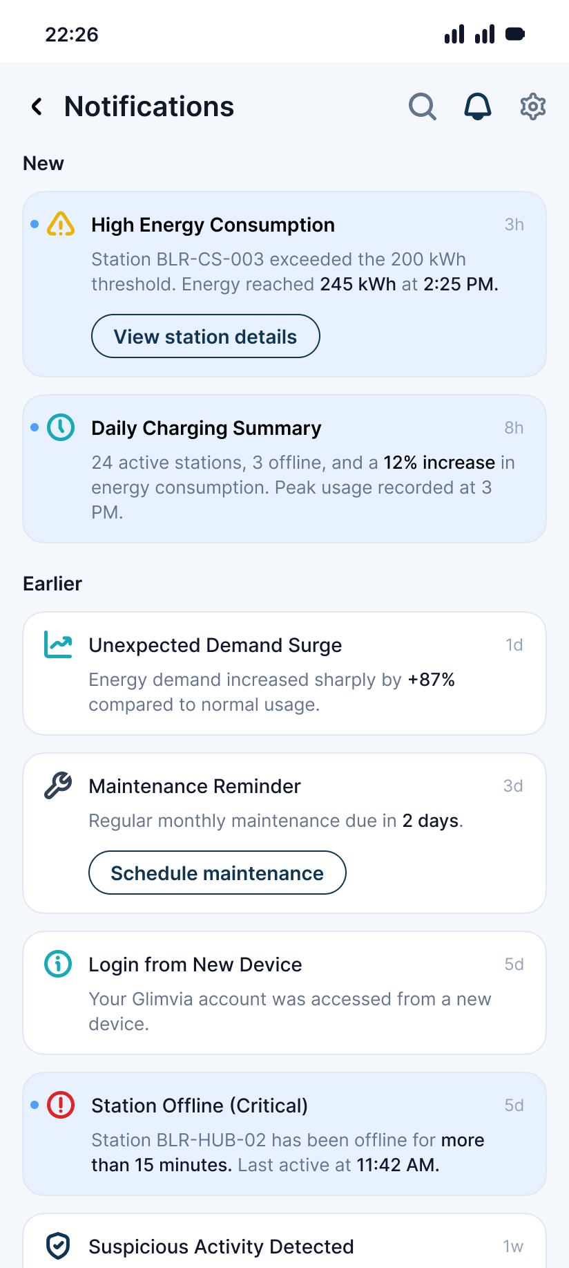 Glimvia maintains alert history for tracking, review, and operational audits.